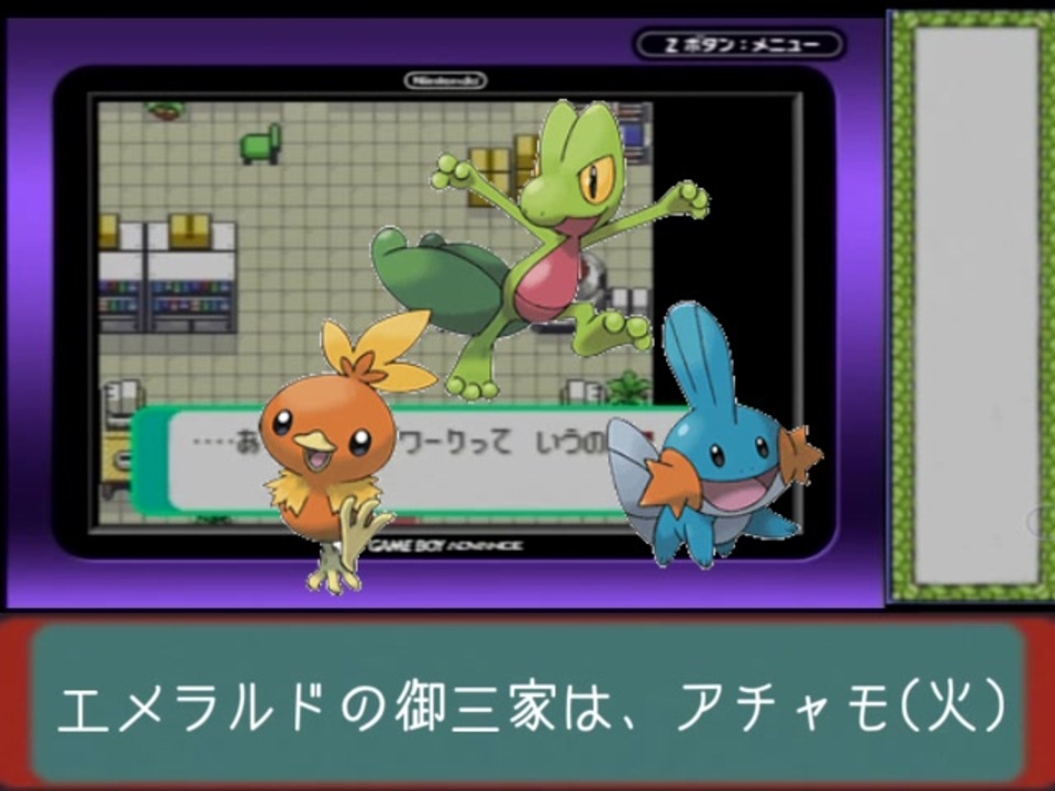 ポケモンエメラルドで最初のポケモン キモリ アチャモ ミズゴロ Yahoo 知恵袋